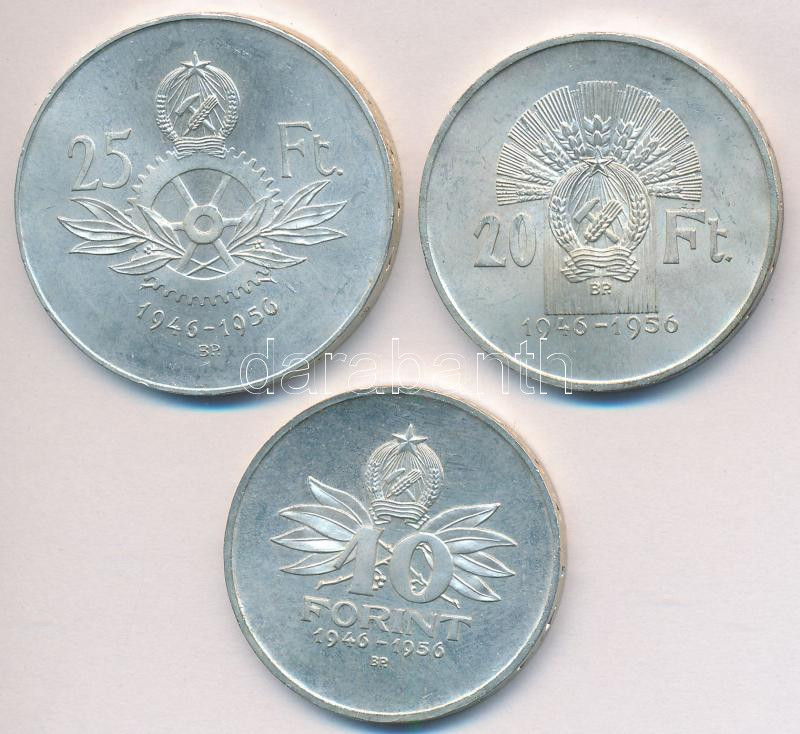 Leírás: 1956. 10Ft + 20Ft + 25Ft Ag "10 éves a Forint" sor T:1-,2