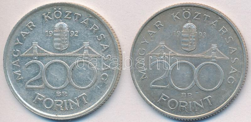 Leírás: 1992-1993. 200Ft Ag "MNB" (2x) T:2,2-