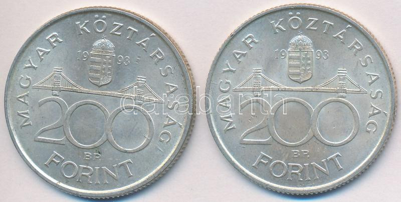 Leírás: 1993. 200Ft Ag "MNB" (2x) T:2,2-