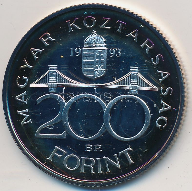 Leírás: 1993. 200Ft Ag "MNB" T:PP