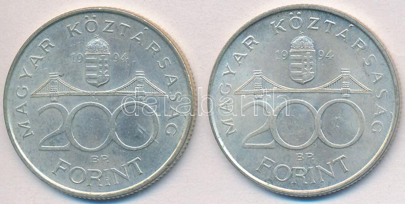 Leírás: 1994. 200Ft Ag "Deák" (2x) T:2,2-
