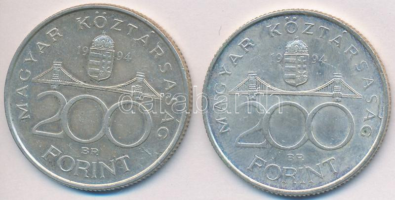 Leírás: 1994. 200Ft Ag "Deák" (2x) T:2,2-