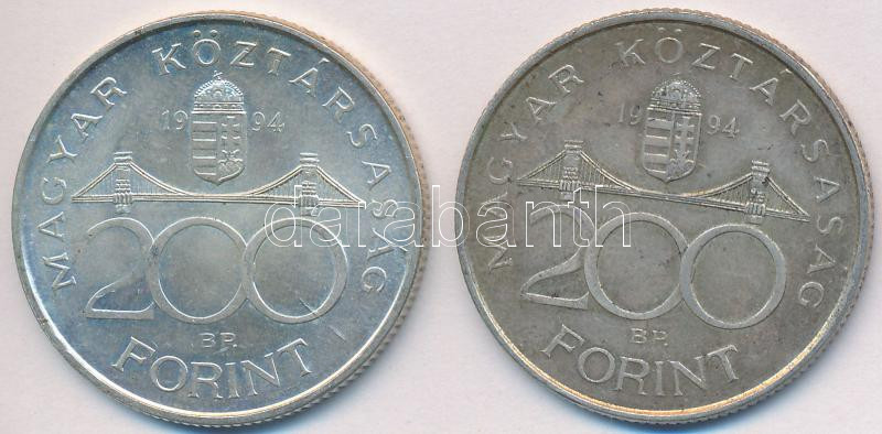Leírás: 1994. 200Ft Ag "Deák" (2x) T:2,2-