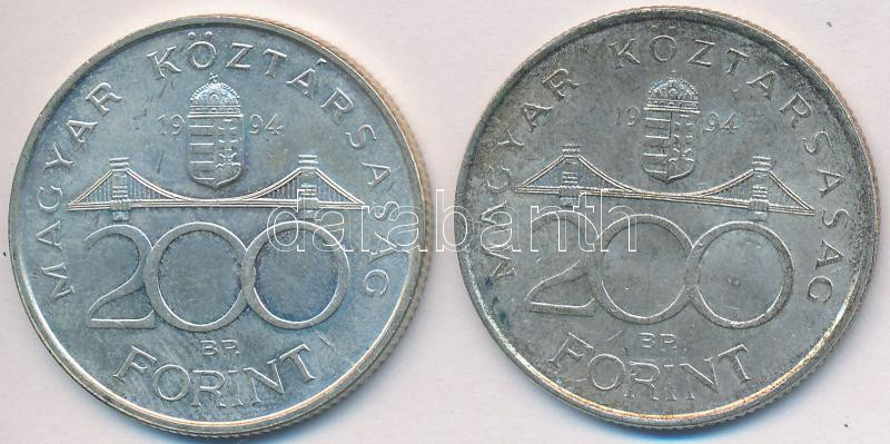 Leírás: 1994. 200Ft Ag "Deák" (2x) T:2,2-