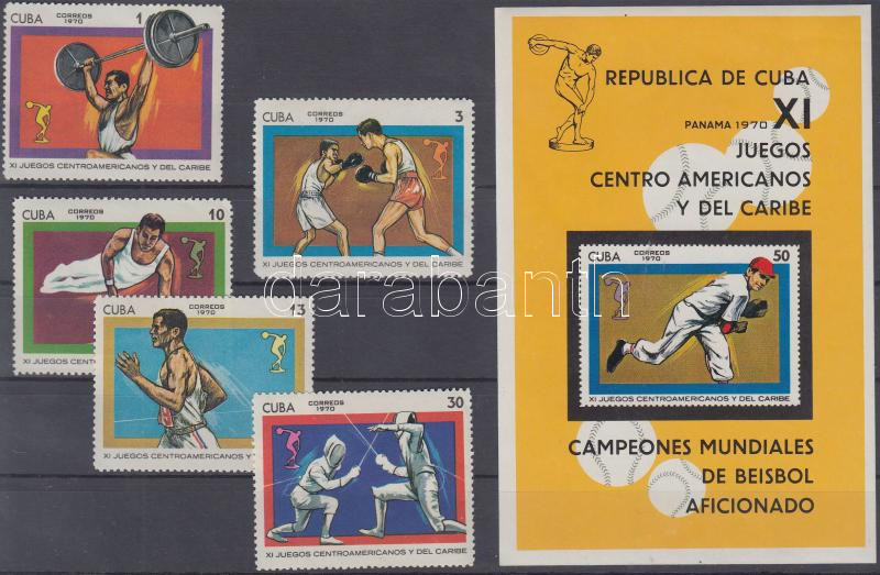 1970 Közép-amerikai és karibi sportjátékok fogazott sor Mi 1568-1572 +... https://www.darabanth.com/hu/228-Fix-aras-ajanlatunk/228.2/30-os-Nyari-belyeg-kedvezmeny/Kuba~90348/1970-Kozep-amerikai-es-karibi-sportjatekok-fogazott-sor-Mi-1568-1572-plus-vagott-blokk-nyomtatott~II951440