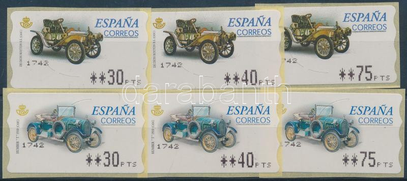 2001 6 db öntapadós automata bélyeg, 2 klf típus Mi 61-62 3 klf névért... https://www.darabanth.com/hu/228-Fix-aras-ajanlatunk/228.2/30-os-Nyari-belyeg-kedvezmeny/Spanyolorszag~90432/2001-6-db-ontapados-automata-belyeg-2-klf-tipus-Mi-61-62-3-klf-nevertekben-30PTS-40PTS-~II905583