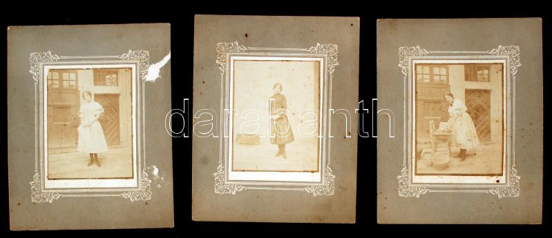 1913 Az Urak és parasztok című színdarab 3 jelenete, Arnótfalvy Relly ajánlásával és feliratozásával, kartonra kasírozva, fotó 8x10,5 cm, karton 20x16 cm