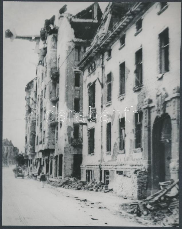 cca 1945 Dr. Kunszt János (1892–1960) felvétele a Krisztina körúti házra zuhant repülőgépről és a szétlőtt épületekről, későbbi nagyítás egy korabeli negatívról, 22x18 cm