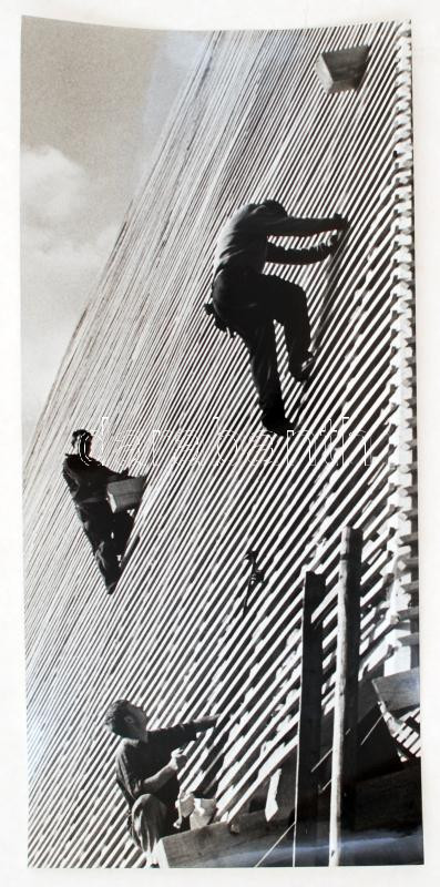 Leírás: cca 1980 Magyar Alfréd: Akrobaták, a szerző által feliratozott vintage fotóművészeti alkotás, 40x19