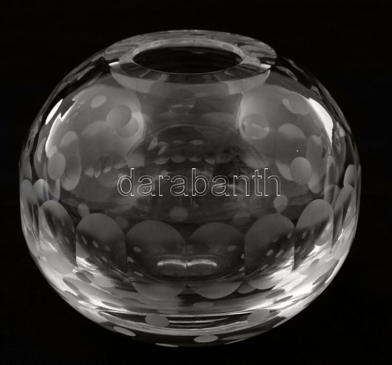 Leírás: Gömb alakú kristályüveg váza, metszett, gravírozott, jelzés nélkül, m: 9 cm