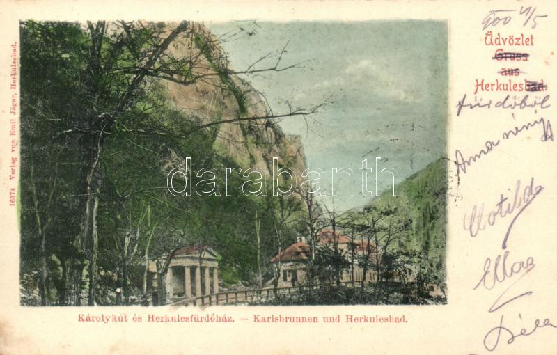 Herkulesfürdő, Károlykút és Herkules fürdőház / well, spa house, verla... https://www.darabanth.com/hu/228-Gyorsarveres/228.0/Kepeslapok/Erdely~200006/Herkulesfurdo-Karolykut-es-Herkules-furdohaz-well-spa-house-verlag-von-Emil-Jager~II1015037
