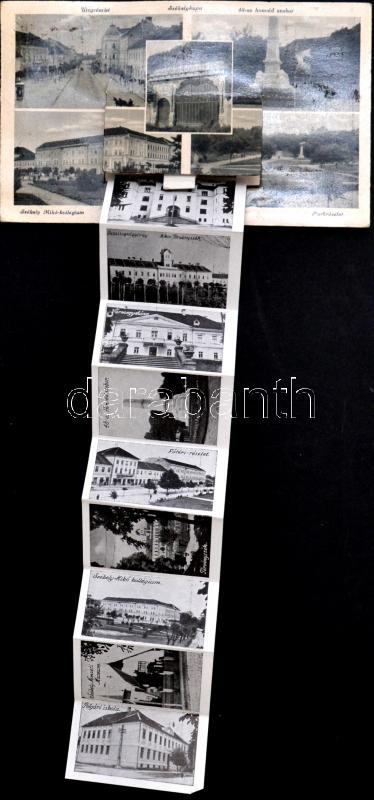 Leírás: Sepsiszentgyörgy, Székely Mikó kollégium, utca, 48-as honvéd szobor / boarding school, street, statue leporellocard