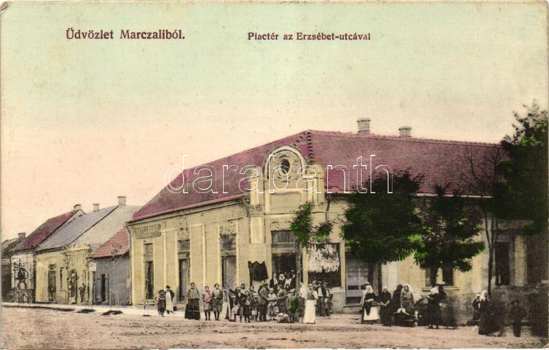 Marcali, Piac tér, Erzsébet utca, Hitelbank, üzlet (EK) https://www.darabanth.com/hu/228-Gyorsarveres/228.0/Kepeslapok/Magyarorszag~200005/Marcali-Piac-ter-Erzsebet-utca-Hitelbank-uzlet-EK~II1018879