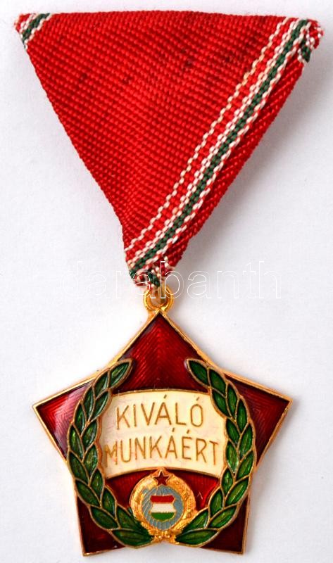 Leírás: 1985. "Kiváló Munkáért" zománcozott jelvény mellszalagon, dísztokban, adományozói okirattal és igazolvánnyal T:1