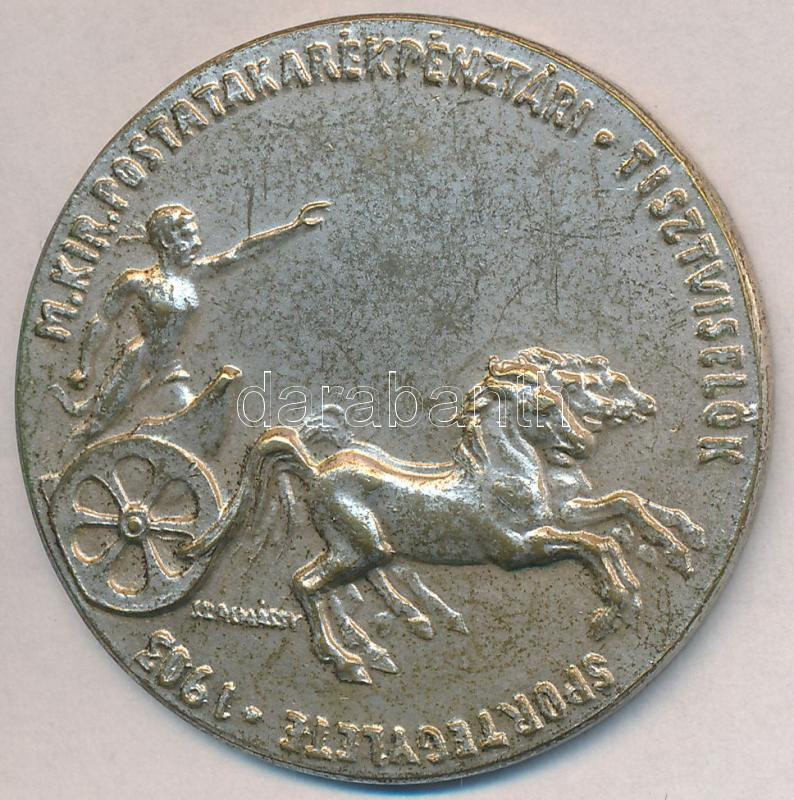 Leírás: Szalmássy István 1938. "Magyar Királyi Postatakarékpénztári Tisztviselők Sportegyesülete 1903. / Balatonalmádi" ezüstözött Br díjérem "LUDVIG BP." gyártói jelzéssel T:2-
