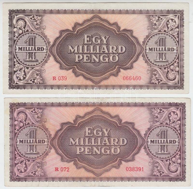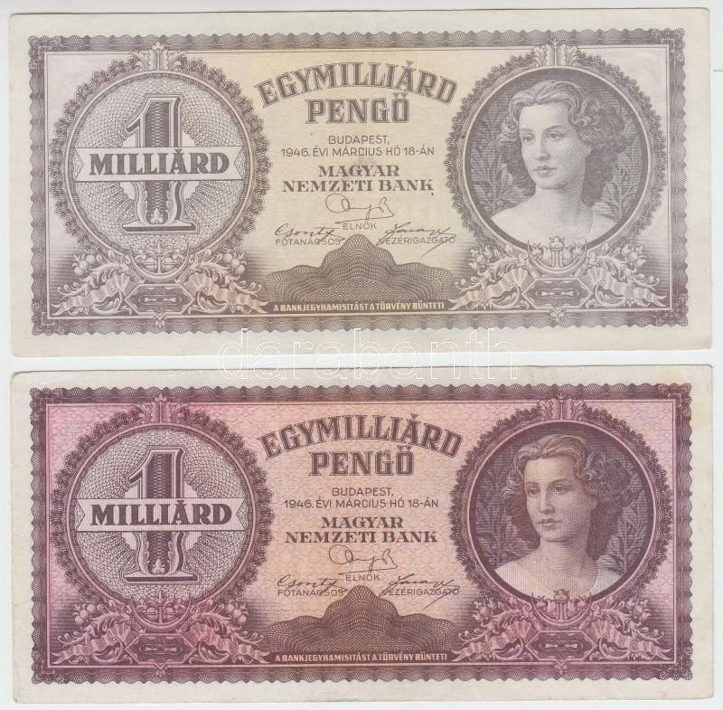 1946. 1.000.000.000P (2x) klf színváltozatok T:II,II- https://www.darabanth.com/hu/228-Gyorsarveres/228.0/Numizmatika/Magyar-bankjegyek~55/1946-1000000000P-2x-klf-szinvaltozatok-TII-II-~II1015905