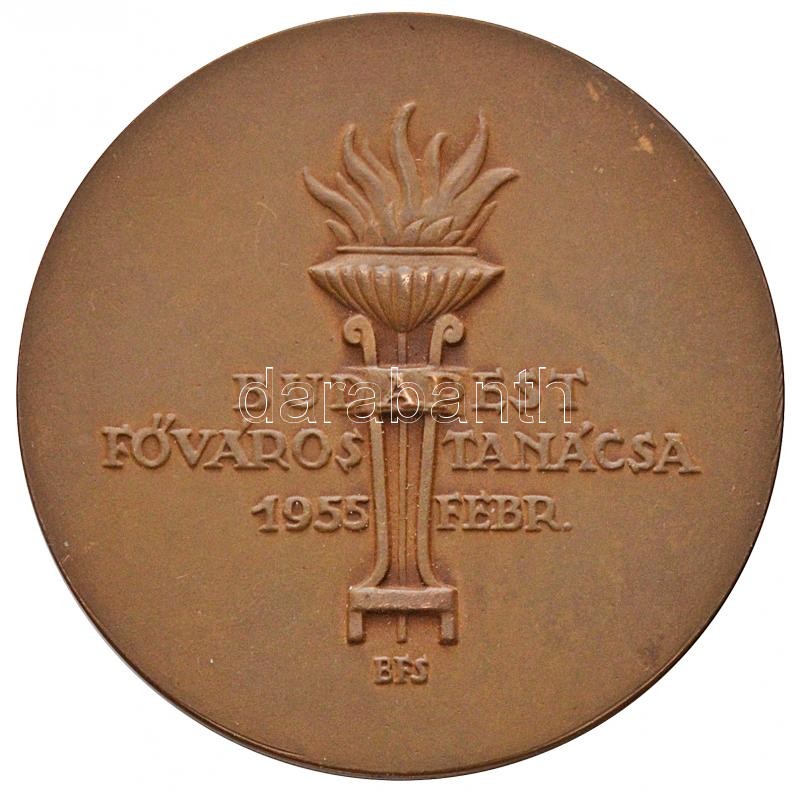 Leírás: Boldogfai Farkas Sándor (1907-1970) 1955. "Budapest felszabadulásának 10 éves évfordulójára / Budapest Főváros Tanácsa" Br emlékérem (60mm) T:2