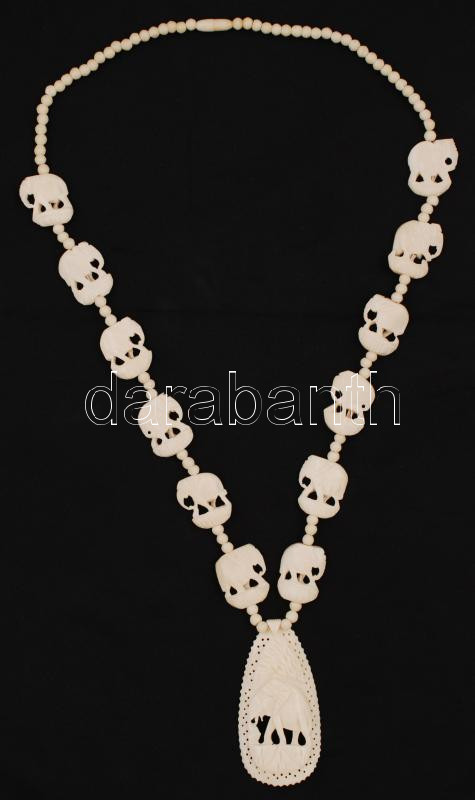 Leírás: Elefánt motívumos keleties díszítésű csont nyaklánc, h: 41,5 cm