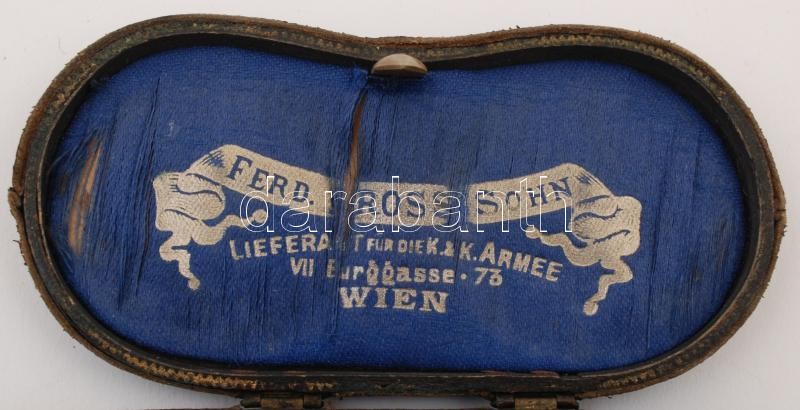 Leírás: Glaser látcső, réz és bőr, jelzett, bőrtokban, apró iránytűvel