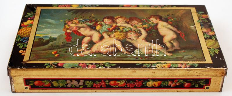 Leírás: Puttókkal díszített dekoratív fém doboz Weiss Manfréd Budapest felirattal, 24x14x4 cm