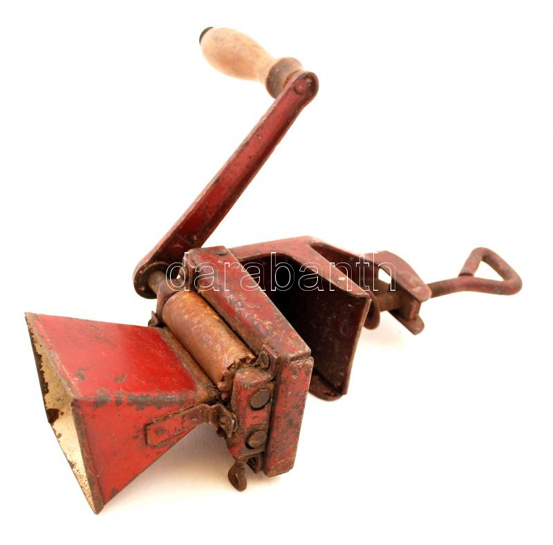 Régi asztalra fogatható fém sajtoló, m: 24,5 cm https://www.darabanth.com/hu/229-Gyorsarveres/229.0/Festmeny-mutargy-papirregiseg-egyeb/Bolhapiac~19/Regi-asztalra-fogathato-fem-sajtolo-m-24-5-cm~II1021737
