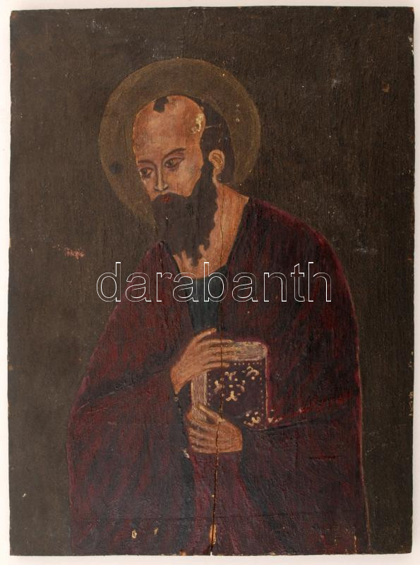 Leírás: Jelzés nélkül: Pál apostol. Olaj, fa, repedt középen, 26×19 cm