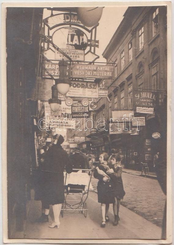 1929. október 22. Kinszki Imre (1901-1945): Király utca, a szerző kézírásos feliratával, de jelzés nélküli vintage fotó a szerző hagyatékából, 8,5x6 cm