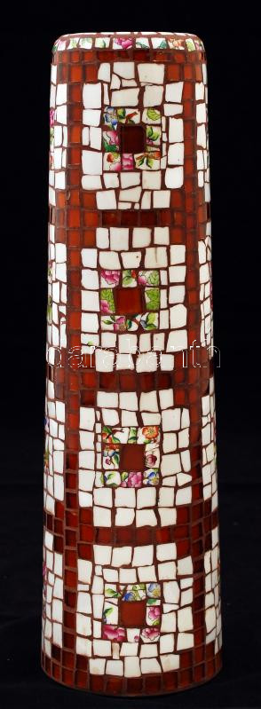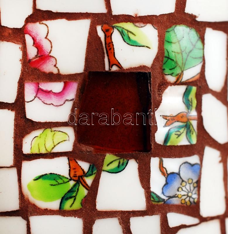 Leírás: S.J. jelzésű mozaikos iparművész váza Herendi Viktória mintás porcelán darabokkal díszítve, hibátlan, jelzett, m: 34 cm