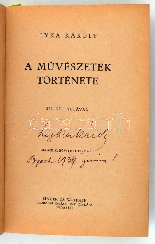 Lyka Károly: A művészetek története. 272 képtáblával. Aláírt példány! ... https://www.darabanth.com/hu/229-Gyorsarveres/229.0/Festmeny-mutargy-papirregiseg-egyeb/Konyvek-Epiteszet-muveszet~27/Lyka-Karoly-A-muveszetek-tortenete-272-keptablaval-Alairt-peldany-Budapest-1939-Si~II1024109