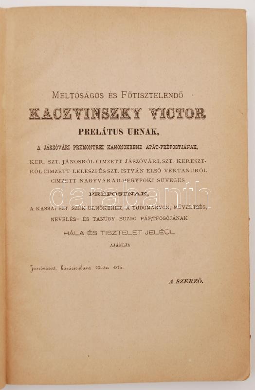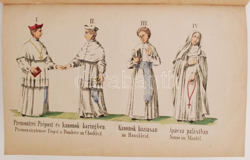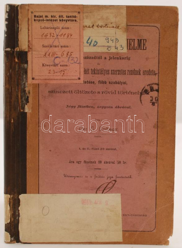 Őri György: Margitsziget történelme az I-ső századtól a jelenkorig. A Margitszigeten lakott hét tekintélyes szerzetes rendnek eredete, rendeltetése, főbb szabályai, színezett öltözete s rövid történelme. Négy füzetben, negyven ábrával. I. és II. ábrával. Kassa, 1875, "Pannonia"- Könyvnyomda. Kiadói karton kötésben, kissé viseltes állapotban.