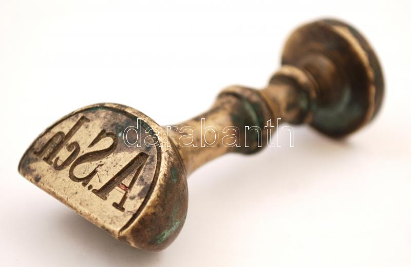 Leírás: 3 oldalas, réz, pecsétnyomó, "A Sch" és "Adolf Schödl Mistelbach" körirattal, 7cm