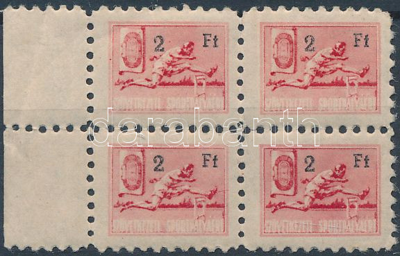 Leírás: Szövetkezeti sportpályáért 2Ft adománybélyeg ívszéli négyestömb