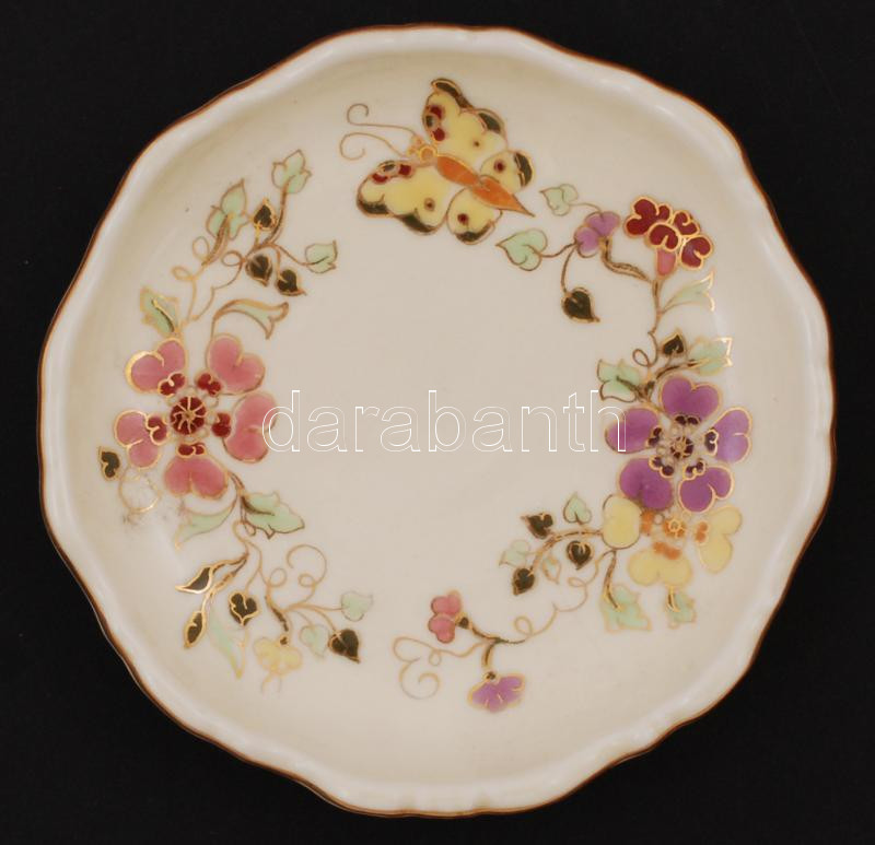 Leírás: Zsolnay pillangó mintás tálka kézzel festett, hibátlan, jelzett, d:12,5 cm