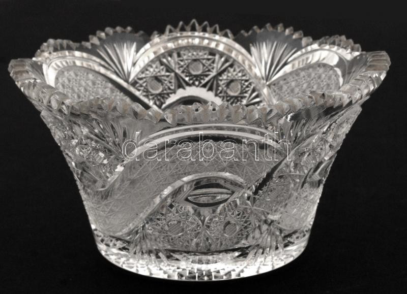 Leírás: Dekoratív üvegtál, csiszolt, metszett, hibátlan, d:14,5 cm, m:8 cm