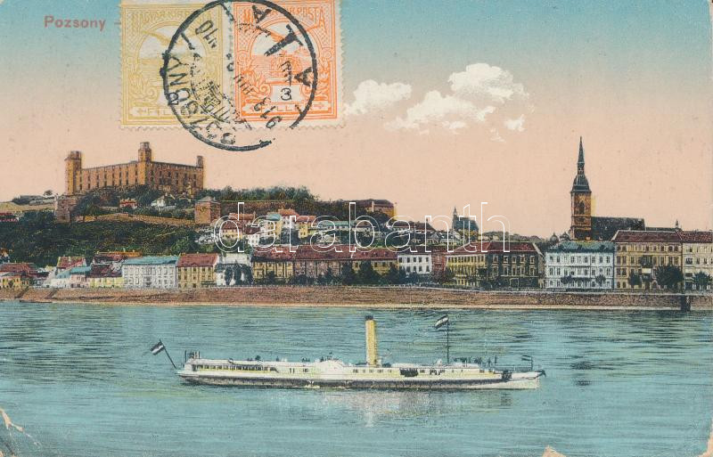 Pozsony, vár, gőzhajó / castle, ship (EK) https://www.darabanth.com/hu/229-Gyorsarveres/229.0/Kepeslapok/Felvidek~200007/Pozsony-var-gozhajo-castle-ship-EK~II1022952