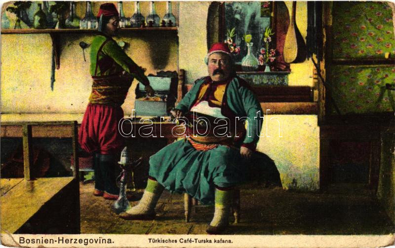 Bosnia and Herzegovina folklore, Turkish cafe, interior (EB) https://www.darabanth.com/hu/229-Gyorsarveres/229.0/Kepeslapok/Folklor~400396/Bosnia-and-Herzegovina-folklore-Turkish-cafe-interior-EB~II1021977
