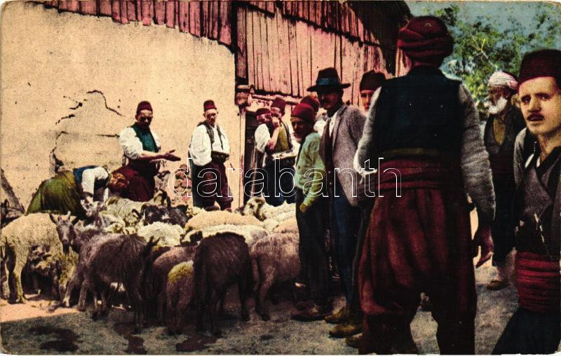 Leírás: Schafmarkt / Bosnian folklore, sheep market, merchants (EB)