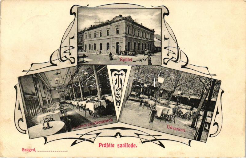 Leírás: Szeged, Próféta szálloda, étterem és sörcsarnok, udvarkert, belső, Art Nouveau, kiadja Grünwald Herman (EK)