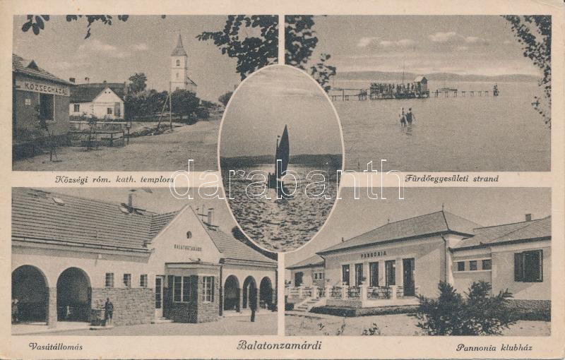 Leírás: Zamárdi, Balatonzamárdi, községháza, Római katolikus templom, Fürdőegyesületi strand, vasútállomás, Pannonia klubház (EK)