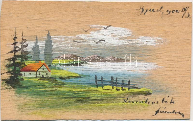Landscape, hand-painted, wooden card https://www.darabanth.com/hu/229-Gyorsarveres/229.0/Kepeslapok/Muvesz~400413/Landscape--hand-painted-wooden-card~II1023499