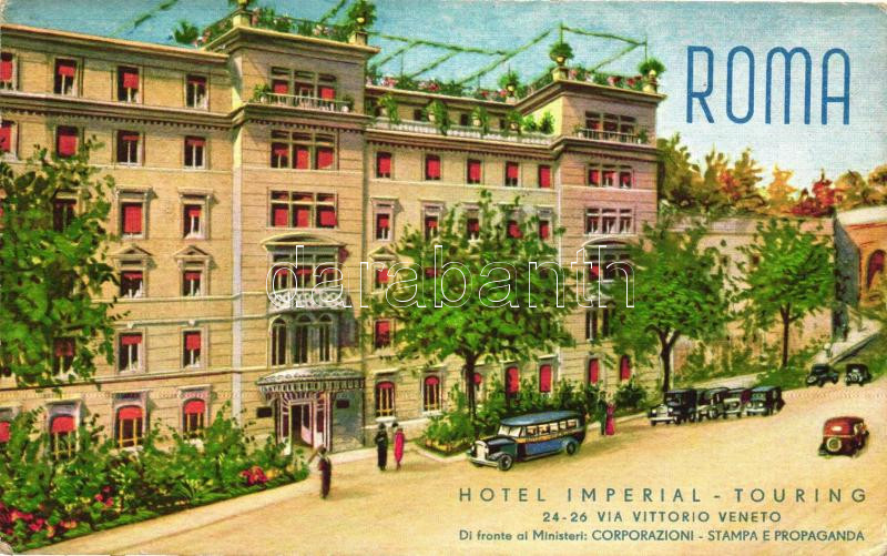 Rome, Roma; Hotel Imperial-Touring, autobus, automobile https://www.darabanth.com/hu/229-Gyorsarveres/229.0/Kepeslapok/Olaszorszag~400369/Rome-Roma-Hotel-Imperial-Touring-autobus-automobile~II1028495