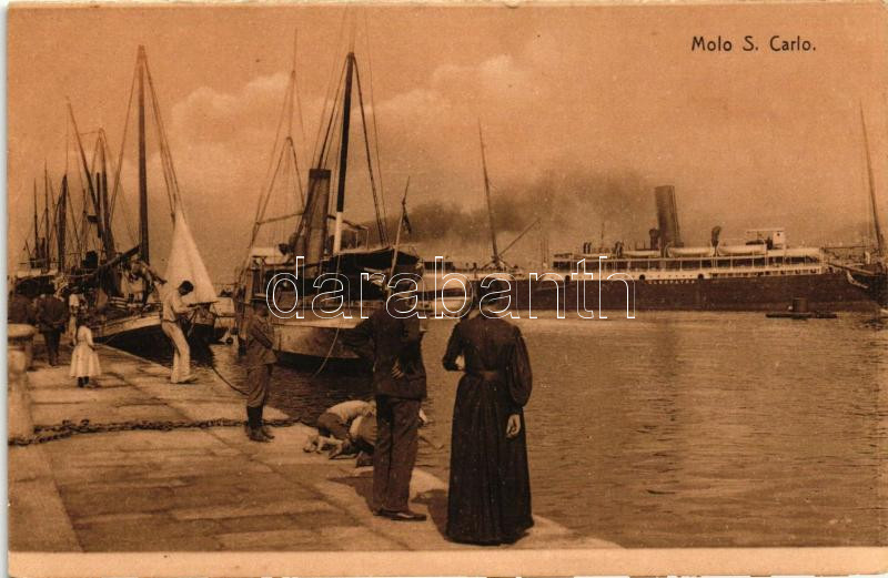 Trieste Molo San Carlo, steamships https://www.darabanth.com/hu/229-Gyorsarveres/229.0/Kepeslapok/Olaszorszag~400369/Trieste-Molo-San-Carlo-steamships~II1025936