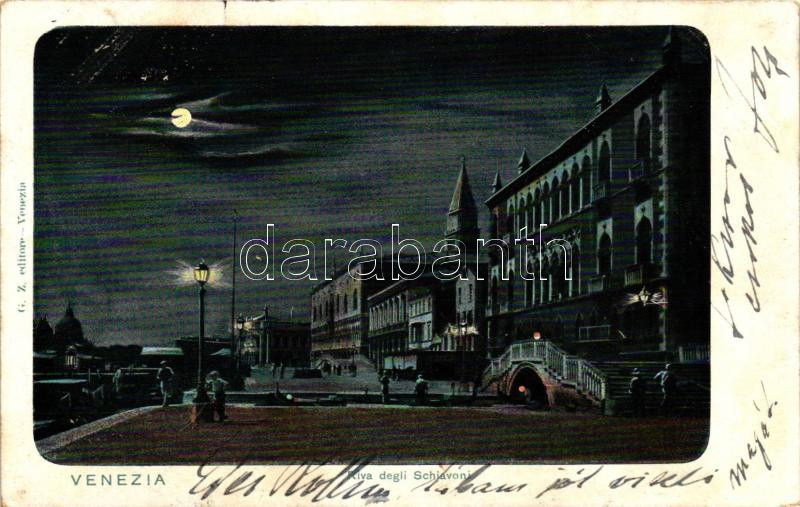 Venice, Venezia; Riva degli Schiavoni / port at night https://www.darabanth.com/hu/229-Gyorsarveres/229.0/Kepeslapok/Olaszorszag~400369/Venice-Venezia-Riva-degli-Schiavoni-port-at-night~II1028498