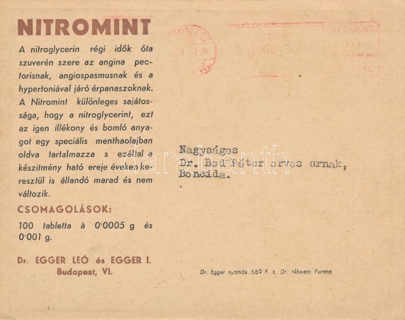 Leírás: Nitromint, Dr. Egger, reklám / medicine advertisement (16.5 x 13 cm) (EK)