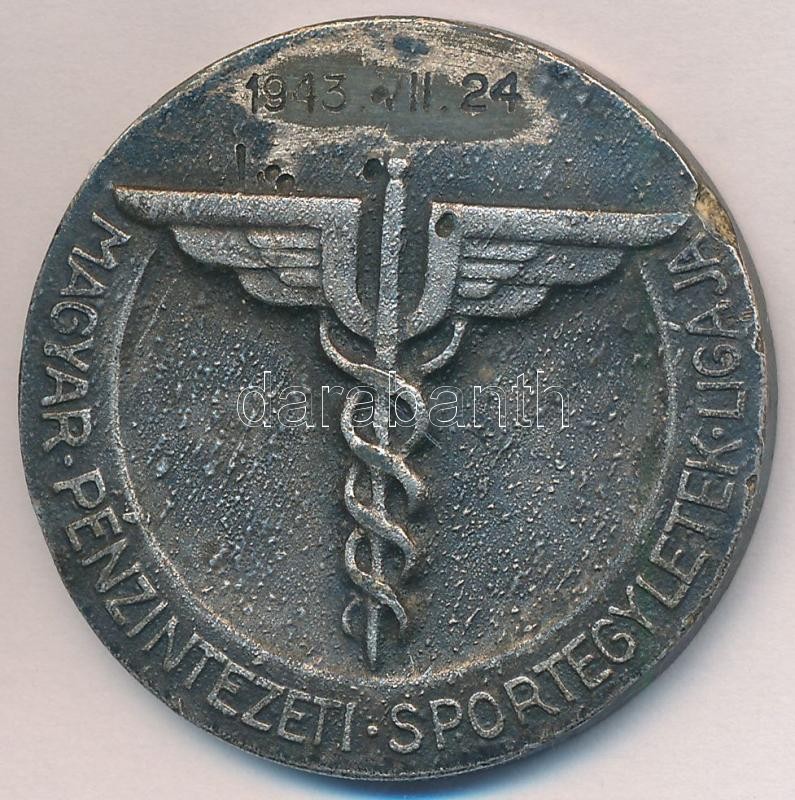 Leírás: Matskássy Gyula (1912-1971) ~1943. "Bajnoki Érem / Magyar Pénzintézeti Sportegyletek Ligája" ezüstözött fém díjérem (54x49mm) T:2- ph.