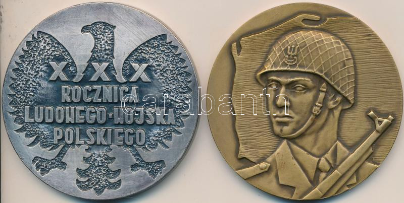 Lengyelország 1985. "30 éves a Lengyel Néphadsereg" fém emlékérem tokban (70mm) + DN "Lengyel Néphadsereg" Br emlékérem tokban (70mm) T:1-