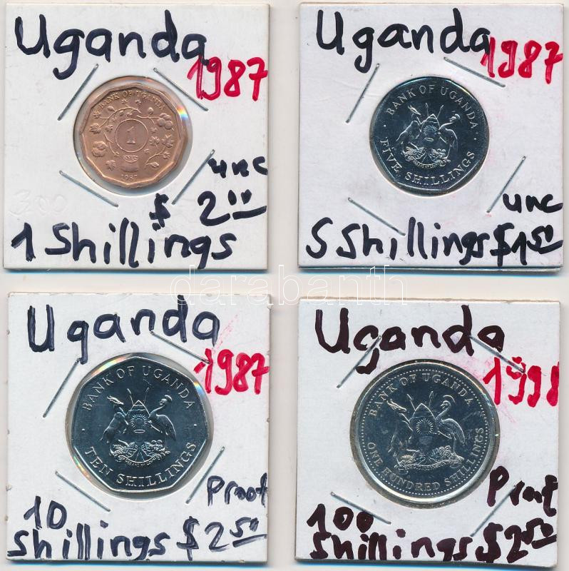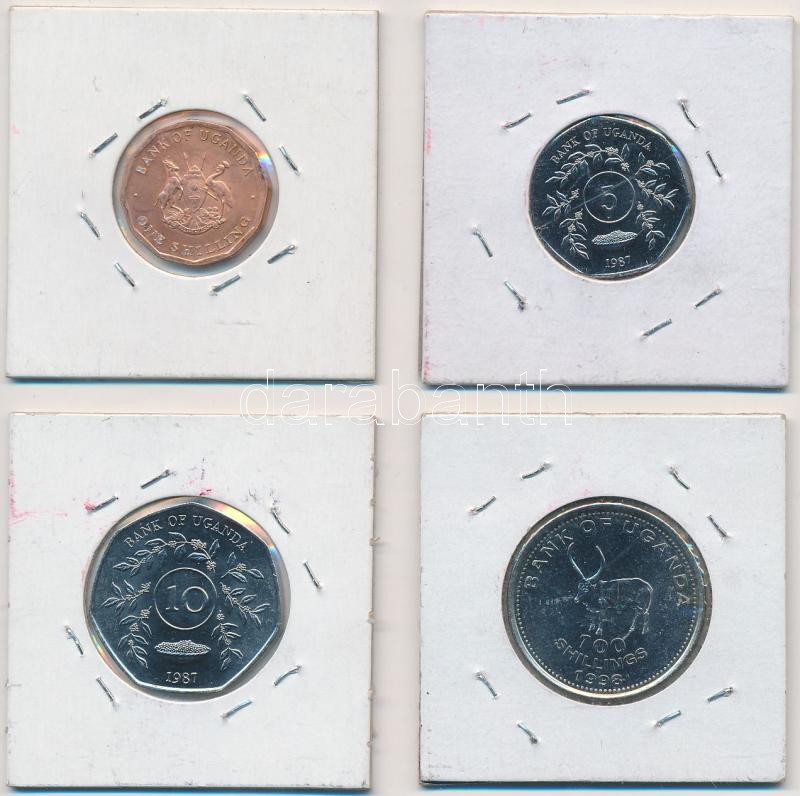Leírás: Uganda 1987. 1Sh réz borítású acél + 5Sh acél + 10Sh acél + 1998. 100Sh Cu-Ni T:2,2-