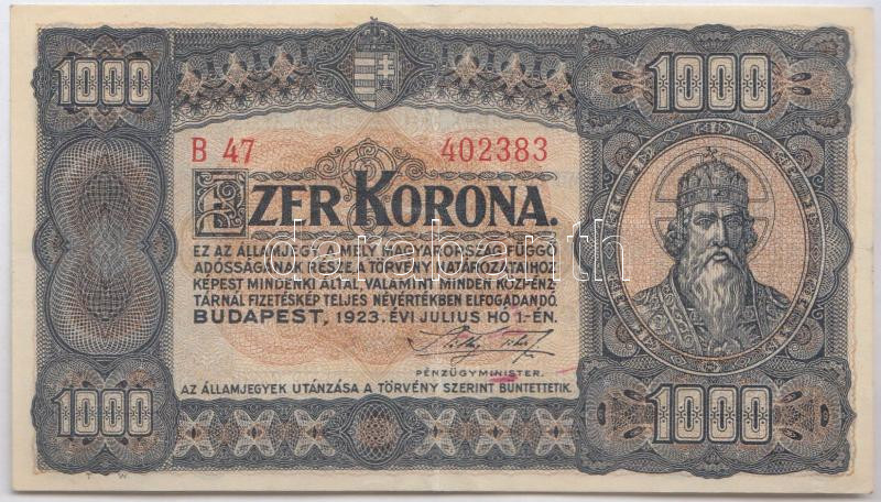 Leírás: 1923. 1000K nyomdahely jelölés nélkül T:II-,III