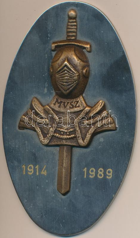 1989. "MVSZ (Magyar Vívó Szövetség) 1914-1989" Br és fém plakett (110x... https://www.darabanth.com/hu/229-Gyorsarveres/229.0/Numizmatika/Magyar-emlekveretek~56/1989-MVSZ-Magyar-Vivo-Szovetseg-1914-1989-Br-es-fem-plakett-110x65mm-T2~II1028828