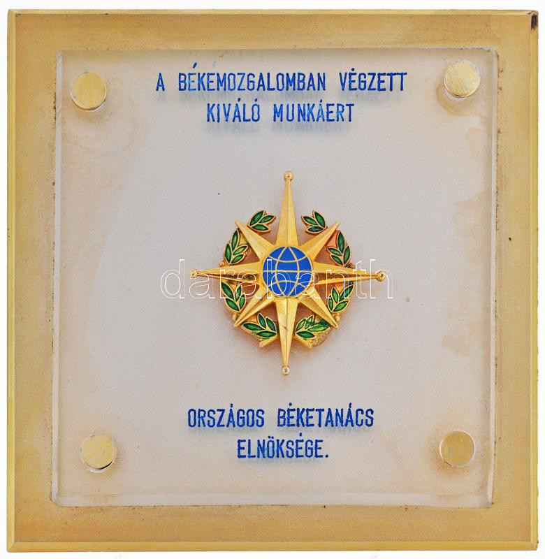 Leírás: ~1980. "A békemozgalomban végzett kiváló munkáért - Országos Béketanács Elnöksége" plexi és aranyozott fém plakett (120x120mm) T:1-